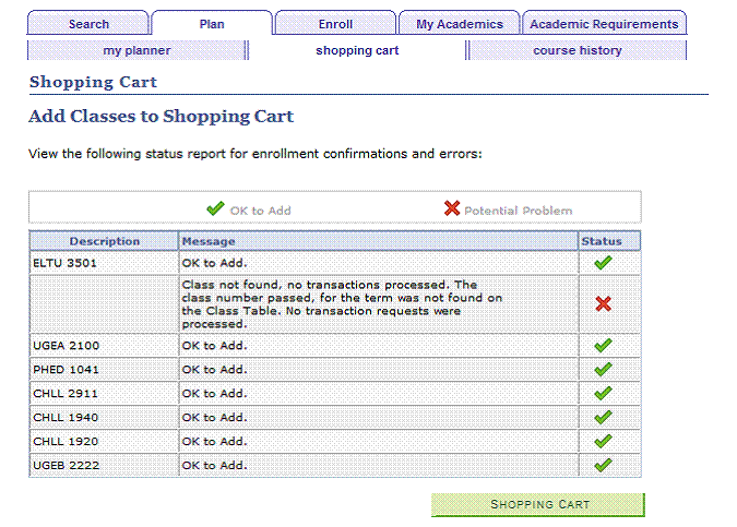 10. I have validated the classes before course selection period. Why does the system show ‘Class not found, no transaction processed’ on the course registration day when I add the classes?